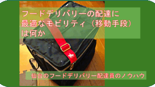 配達員のツール フードデリバリーの配達に最適なモビリティ(移動手段)は何か フードデリバリーの配達業務におすすめの移動手段と、私が使っている移動手段の詳細を紹介します。 2025.09.20 配達員のツール