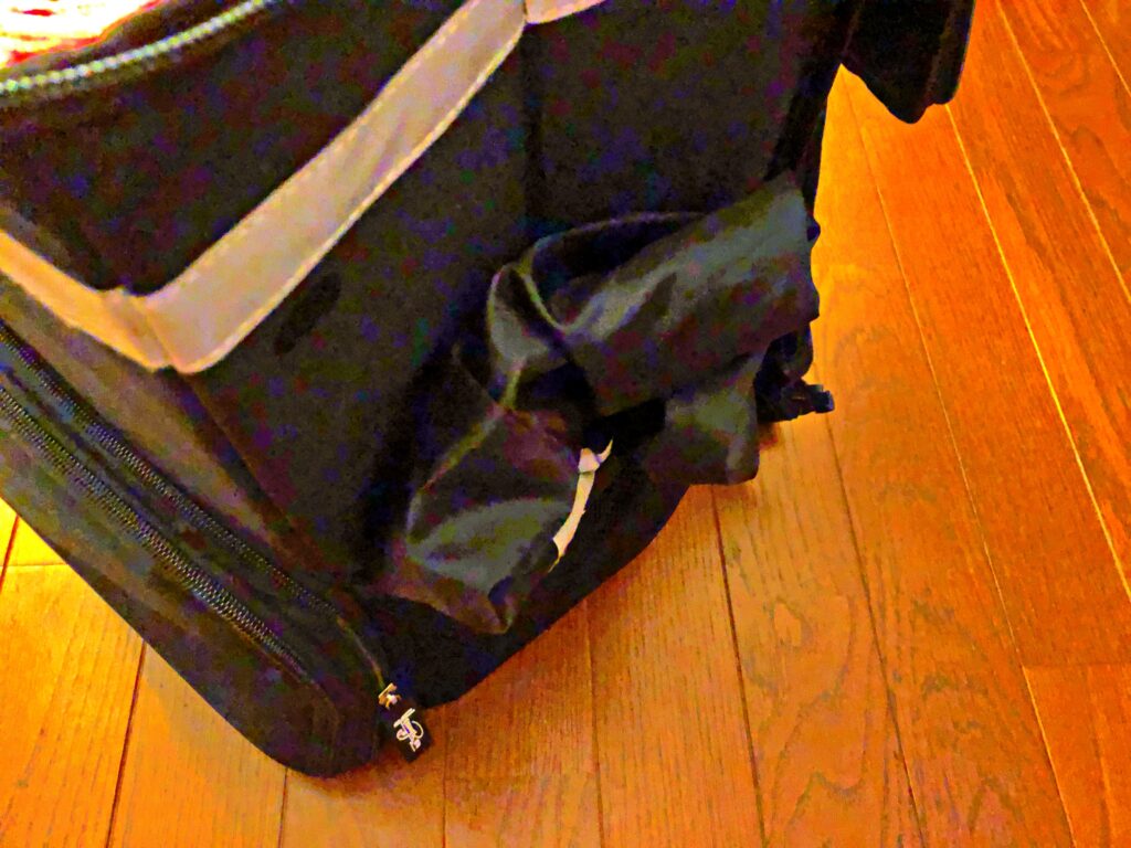 ただファスナーだとドロップオフ地点が照明がなくて真っ暗な玄関だったりすると、ファスナーのスライダーが目視しづらくて開けるのに手間取ります。