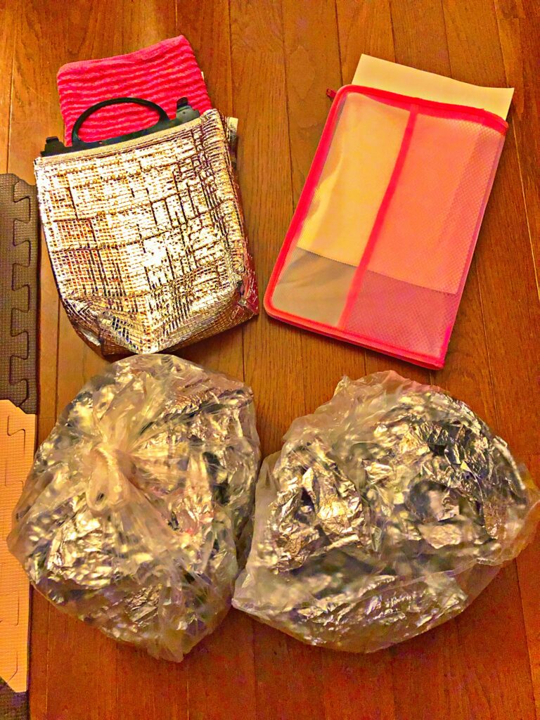 アルミシートはデリバリーバッグを買ったときに同梱されていたYummyRunの製品を使っていますが、100円ショップの災害対策グッズ売り場にあるものでも代用可能だと思います。