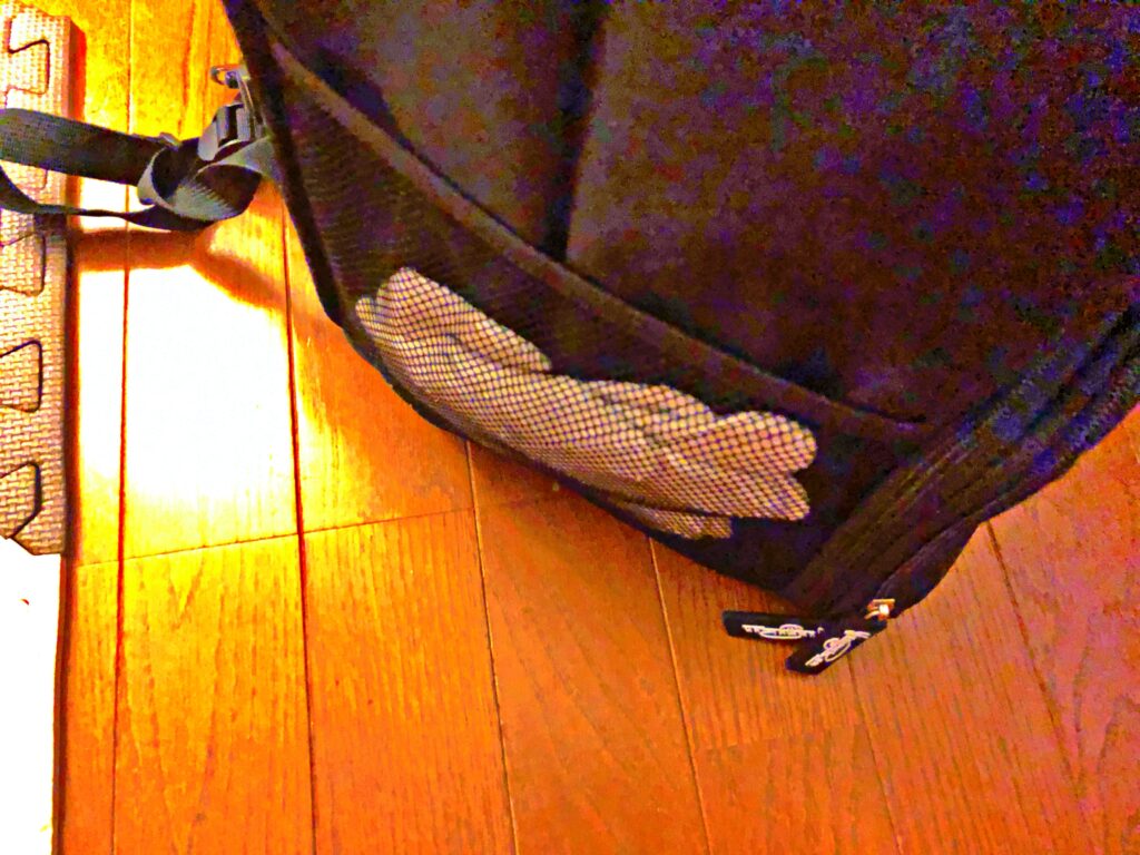 特にメイン収納部のファスナーにアルミシートが巻き込まれて傷むことがあるので、アルミシートを保護するためにレジ袋に入れています。