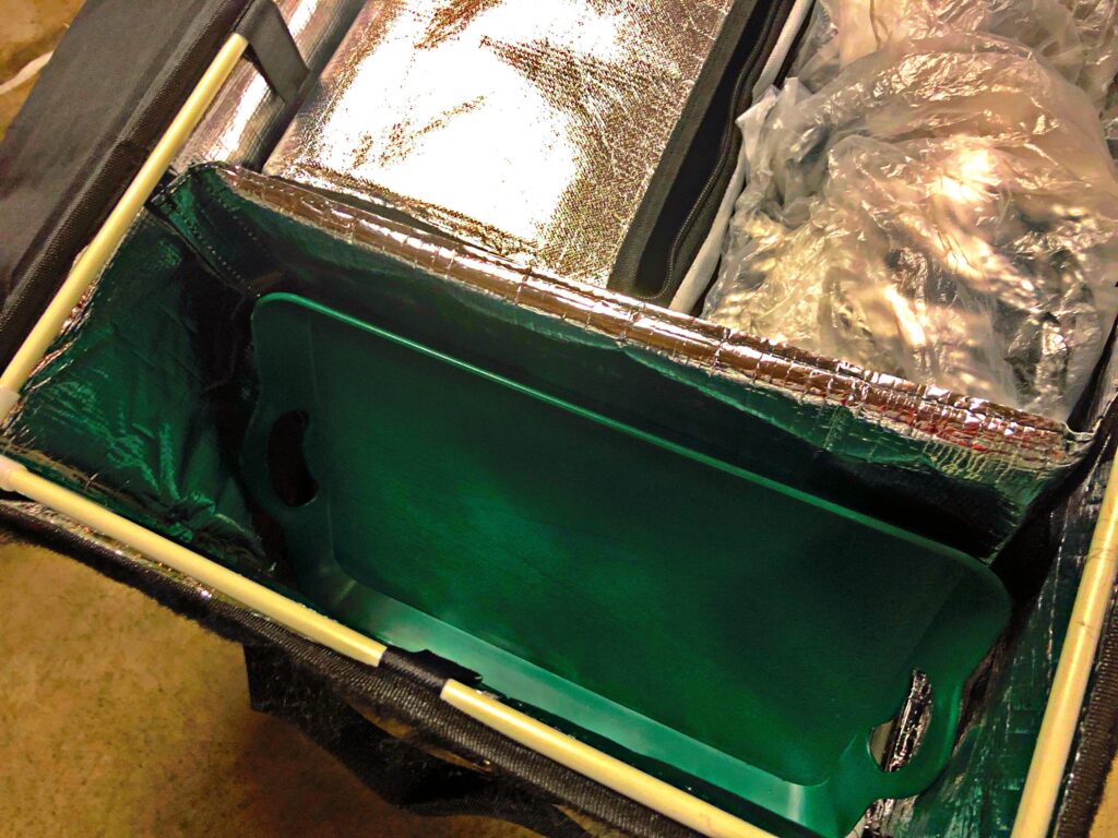以上の理由から私は「手から手へ受け渡す」のはやめて、下記のトレーをデリバリーバッグに入れるようにしました。
